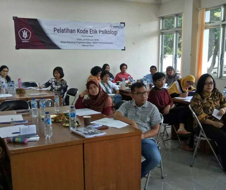 Hari ini, Sabtu 24 Februari 2018, HIMPSI JAYA telah menyelenggarakan “Sosialisasi dan Pelatihan Kode Etik Psikologi”, dengan narasumber Majelis HIMPSI diantaranya Ibu Dr Nani Nurrachman Sutojo, Psikolog dan Dr JAA Rumeser, Psikolog. Pertemuan yang dibuka Ketua HIMPSI JAYA, Dr Widura Imam Mustopo, Psikolog ini, dihelat bertempat di Dinas Psikologi Angkatan Udara RI, Halim Perdanakusuma, Jakarta, dihadiri oleh 30 anggota HIMPSI JAYA. Selain sosialisasi dan penyegaran tentang Kode Etik Psikologi, program ini juga bertujuan mengingatkan kembali secara kontinu bahwa dalam melaksanakan praktik psikologi, psikolog dan ilmuwan psikologi perlu senantiasa merujuk pada Kode Etik Psikologi Indonesia.